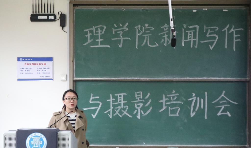 为进一步提高学院新闻宣传工作质量和水平,4月21日下午,理学院在嘉陵江路校区主教学楼B209开展“融媒体时代如何做好校园新闻”专题培训会,宣传部曹玉洁老师主讲,党总支副书记刘聘主持培训会。