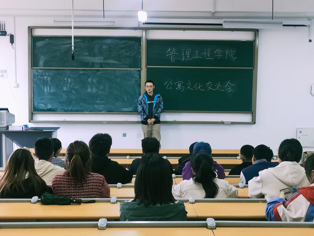 4月21日下午,管理工程学院公寓自管会在2号教学楼503教室举行公寓建设交流会。自管会全体成员参加,会议由辅导员韩群主持。