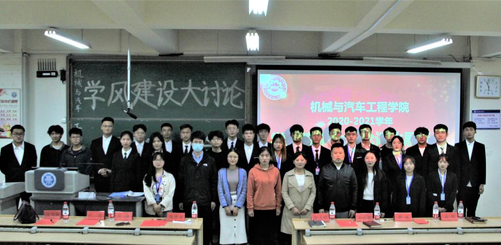 为进一步加强学风建设,激发班级学风建设的主动性和积极性,加强对班级学风建设的认同感,4月28日下午,机械与汽车工程学院在1号教学楼B211教室举办“学风建设大讨论”评比展示会。机械与汽车工程学院辅导员徐卫晓、李龙、吴静、张翱、代莉、王文超、王浚资老师担任评委,2018级、2019级、2020级各班班长、团支书、学习委员近300人参加会议。