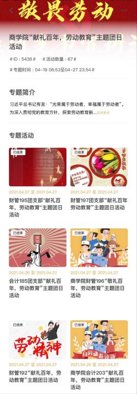 “1962年,兰考遭遇严重的灾荒,为了尽快恢复全县的粮食产量,焦裕禄亲自率领干部、群众,在恶劣条件下进行翻淤压沙、封闭沙丘等实地实验,用自己辛勤的劳动为全县粮食产量恢复做出了巨大贡献。”会计204班的杨硕在分享会上通过视频播放、故事分享讲述原兰考县委书记焦裕禄的故事,将亲民爱民、艰苦奋斗、科学求实、迎难而上、无私奉献的“焦裕禄”形象再次展现,也为同学们上了一堂生动的“劳动精神”理论课。这是商学院一百场劳动精神微团课宣讲中的一幕。为弘扬劳动精神、讴歌劳动模范,商学院团委开展“献礼百年,劳动教育”主题团日活动,各团支部积极组织劳动教育,以百场微团课宣讲形式分享党员劳动模范故事,弘扬劳动精神,同时制作微团课宣讲视频推动劳动教育入脑入心,强化新时代大学生的劳动责任感、使命感和荣誉感。团课结束之后,商学院学子在一个个党员劳动者的光辉事迹中对劳动精神有了更深的感悟。财管195班颜萌这样说道:“无论时代条件如何变化,我们始终都要崇尚劳动、尊重劳动者,这就是我们今天纪念五一国际劳动节的重大意义。”