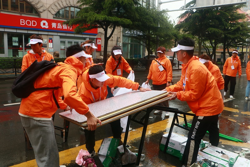 在五四青年节到来之际,由青岛市人民政府主办,青岛市体育局、青岛市体育总会、青岛市市南区人民政府、青岛市崂山区人民政府承办的马拉松赛事,5月4日上午顺利举行,艺术与设计学院团委书记王俊富带领学院马拉松志愿者服务队20余名同学参加,配合赛事服务部补给站提供补给服务,为赛事的成功举办贡献力量。