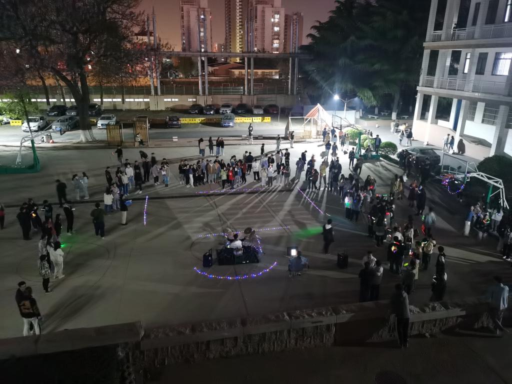 张宇表示,生命在于运动,希望大家对运动保持热爱,以本次荧光夜跑为契机,加强体育锻炼,并提醒大家注意安全,在运动中找到乐趣。接着,学校器乐团、舞蹈团以劲歌热舞开场,将活动气氛推向高潮,歌曲《我的祖国》等红色曲目无不获得同学们的掌声与欢呼。