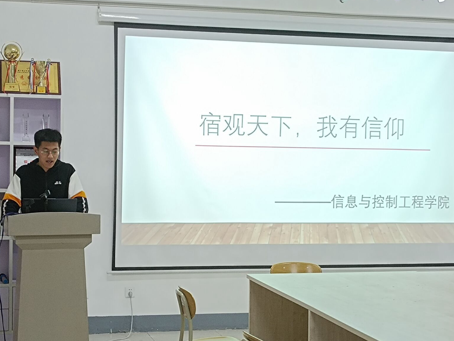 5月7日晚,信息与控制工程学院在嘉陵江路校区北区B2#222“信控·致新工场”举办第十八期“宿观天下,我有信仰”思想领航活动,本次活动由姜名哲同学主持,自动201班同学全员积极参加。