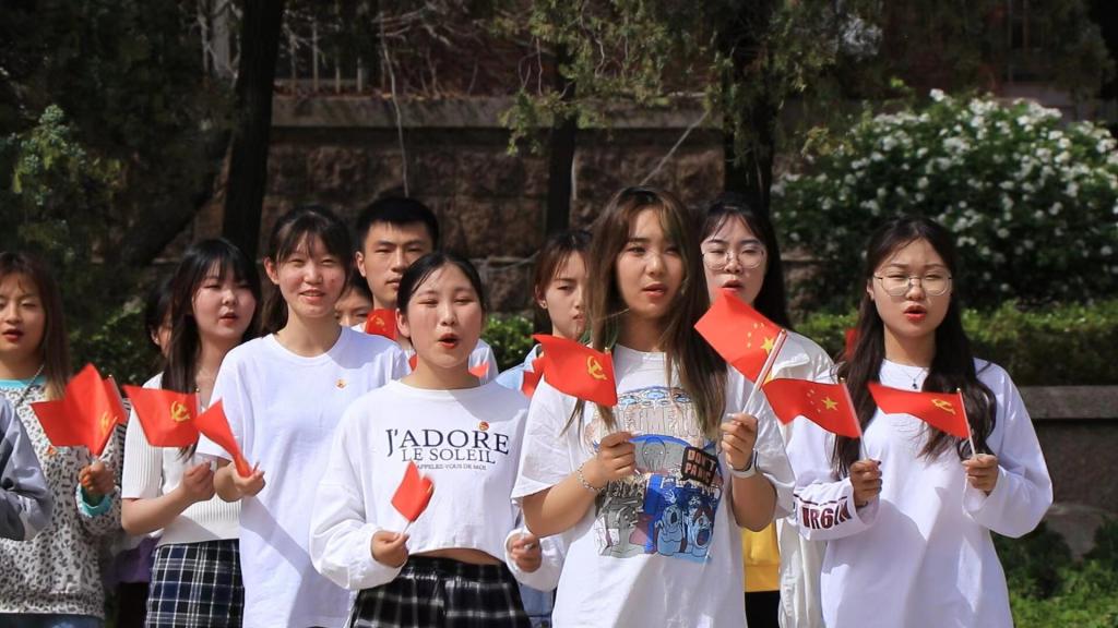 一首红歌,记录一段峥嵘岁月,一首红歌,象征一面光辉旗帜,《唱支山歌给党听》《没有共产党就没有新中国》《歌唱祖国》《名字叫中国》《团结就是力量》......这些脍炙人口、耳熟能详的歌曲,在同学的精心编排下,被生动传神地演绎出来,再现了中国共产党红色征程中的峥嵘岁月。澎湃昂扬的歌声,一次次引发现场观众的强烈共鸣,激起阵阵热烈掌声。活动现场一片欢腾,同学们挥动着手中的党旗、国旗,尽情释放心中的激动和喜悦。第一首歌曲尾音未落,“唱支山歌给党听,我把党来比母亲……”的熟悉旋律依次而起,歌声依次响起,或欢快、或振奋、或激昂,一首首耳熟能详的红色歌曲吸引了众多同学驻足观看,纷纷拿出手机拍摄,引发了全场的热情,掌声连连、喝彩阵阵,将活动推向了高潮。