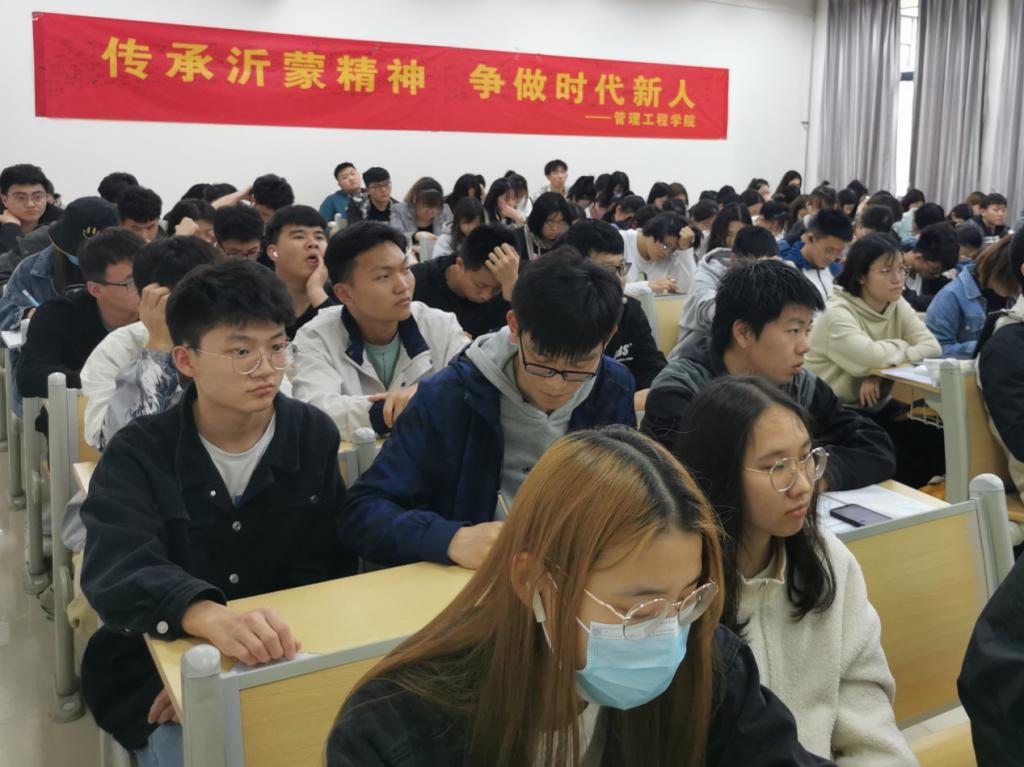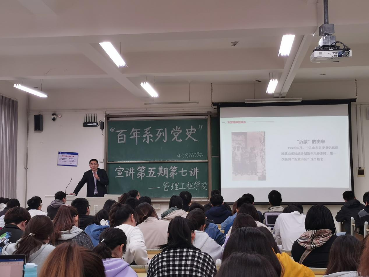 5月12日下午,365完美体育理论宣讲团“百年党史系列专题讲座”第五期在主教学楼B315举行,邀请365完美体育理论宣讲团成员、马克思主义学院王玉喜副教授做了题为《“沂蒙精神”的渊源、特征及意义》的主题宣讲。本期讲座由管理工程学院承办,学院团委书记、学工办班主任陈永亮主持。365完美体育理论宣讲团团长李龙强教授及马克思主义学院、管理工程学院共160多位同学参加。