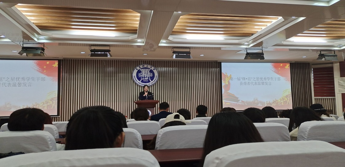 颁奖典礼上,徐文聪、温馨分别作为“领商者”年度人物和“锋·范”之星获奖代表进行了发言。他们分别从勤奋学习、服务同学、无私奉献等方面分享了自己的奋斗历程以及工作、生活中的感悟。他们发自肺腑的感言让在座的同学们感受到榜样的蓬勃力量,激发了同学们积极进取、努力拼搏的劲头。