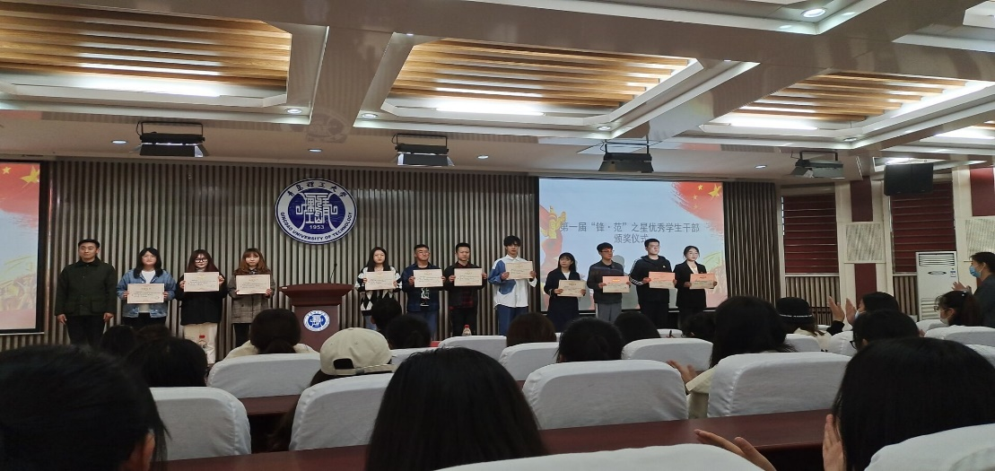 商学院第一届“领商者”年度人物、“锋·范”之星评选活动经过前期筹备,历经报名、推选、公示等阶段,最终共有5名校友和4名在校生获得了“领商者”年度人物荣誉称号、13名在校生获得了“锋·范”之星荣誉称号。此次颁奖典礼对此22位同学进行了表彰,出席颁奖典礼的老师为获奖学生代表颁发了荣誉证书。