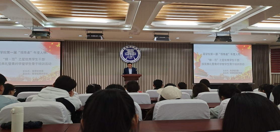 商学院始终重视学生骨干的培养和先进典型的挖掘,重视在同学当中广泛发扬榜样的力量,在学院全体师生中营造学榜样、做榜样的积极氛围。我院已将“领商者”年度人物和“锋·范”之星的评选列入学生工作计划,评选和表彰活动是我院青马培训创新形式,培养政治强、能力强、品德优、学习优的“双强双优”学生干部重要举措之一。下一步,评选和表彰活动将根据学生工作计划定期举办。(撰稿:刘奕;审核:薛诚、董兰国)