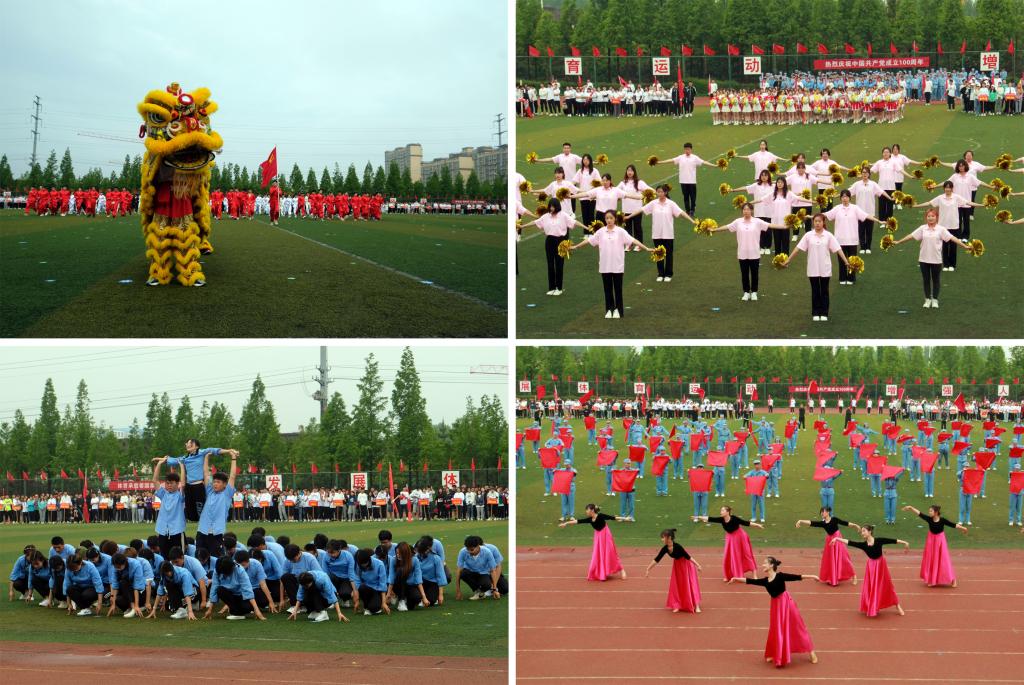 开幕式上,国旗护卫队、师生运动员方队以昂扬的姿态、矫健的步伐依次通过主席台,各方队紧密围绕庆祝建党100周年主题,结合专业特色进行了创意十足、精彩纷呈的入场式表演,充分展现了临沂校区师生朝气蓬勃、奋发进取的精神风貌。由机械与电子工程系、管理工程系、土木与建筑工程系分别带来的节目《红色传承 武动经典》《百年华诞 舞动今朝》《点亮中国》,场面震撼、寓意深刻,歌颂了中华文明历久弥新的价值导向,歌颂了中国共产党不畏艰险、英勇顽强的英雄主义精神,歌颂了中华儿女乘风破浪、勇立潮头,在新时代创造中华民族新的更大奇迹的信心和决心,为运动会增添了隆重热烈的气氛。