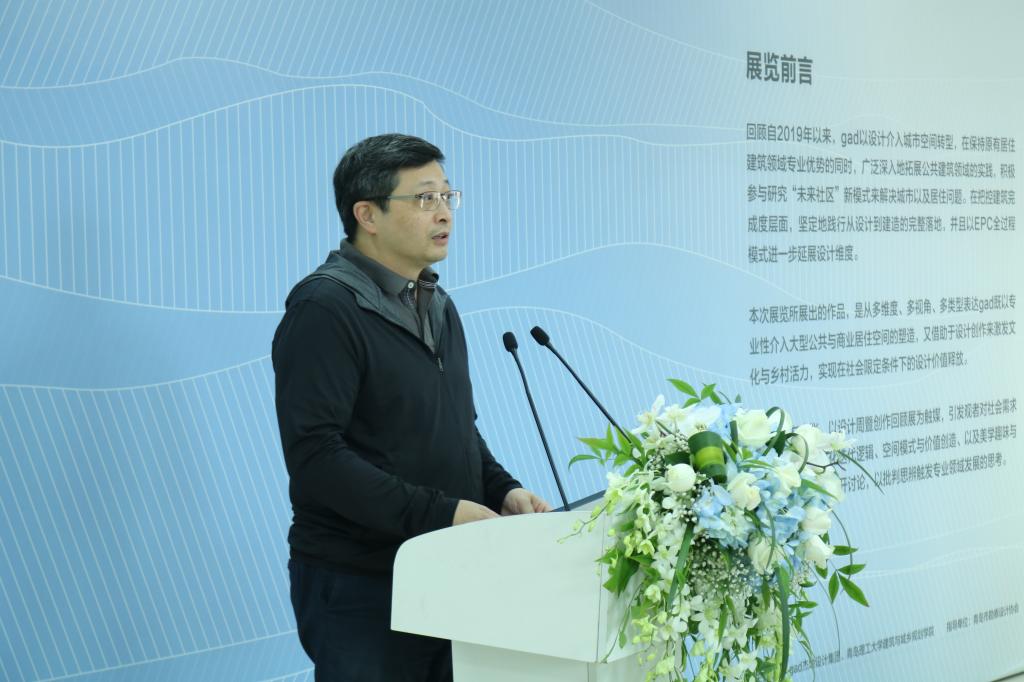 随后,gad设计周2020暨创作回顾展开幕式在建筑馆三楼展厅举行,青岛北洋建筑设计有限公司设计总监马威,青岛腾远设计事务所有限公司总建筑师王震铭,gad创始合伙人、设计总监邬晓明,gad合伙人、青岛公司总经理杨明,学院党委副书记高江、副院长刘崇等参加开幕式,gad青岛执行总经理、365完美建筑学专业1993级校友王欣主持开幕式。