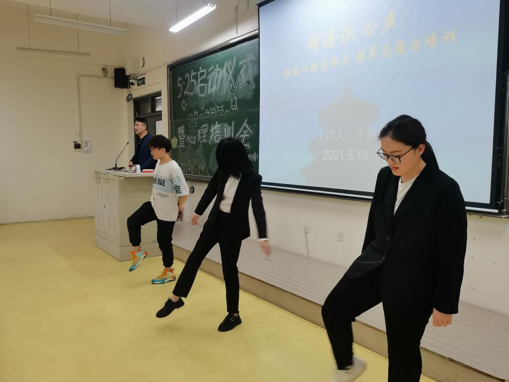 王振以“闻语识心声--班级心理宣传员、朋辈志愿者培训”为主题培训,通过心理小游戏、案例分析从心理学的定义,大学生心理健康标准,朋辈职责及注意事项等四个方面详细讲解。他强调,心理工作者要遵循保密、积极关注、助人自助的三大原则。班级心理宣传员、宿舍朋辈志愿者要主动了解并宣传心理健康知识,参与并组织班级开展团体心理辅导活动,及时了解并上报学院。朋辈者要做到自身心理素质强,做一个爱的使者,把阳光传递到身边人的心中。