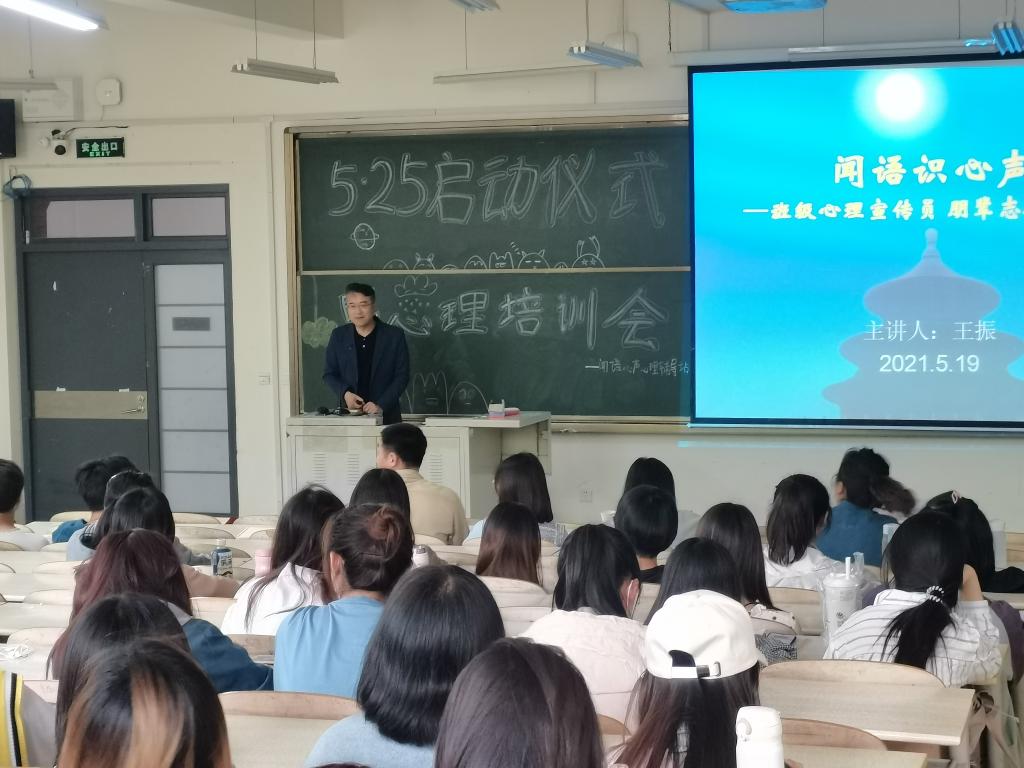 为积极响应365完美第十八届“525”心理健康节的号召,充分发挥朋辈心理辅导的重要作用,提升学院心理健康的内涵体验式教育水平,5月19日,人文与外国语学院于嘉陵江路校区主教学楼B104举办了“525”我爱我主题系列活动启动仪式暨朋辈心理培训活动。人文与外国语学院学工办主任兼团委书记马松、辅导员贾舒文、扎西央宗以及学生干部参加,学院全体心理宣传员及朋辈志愿者计200人参与培训。本次培训由学院党委副书记王振担任主讲。