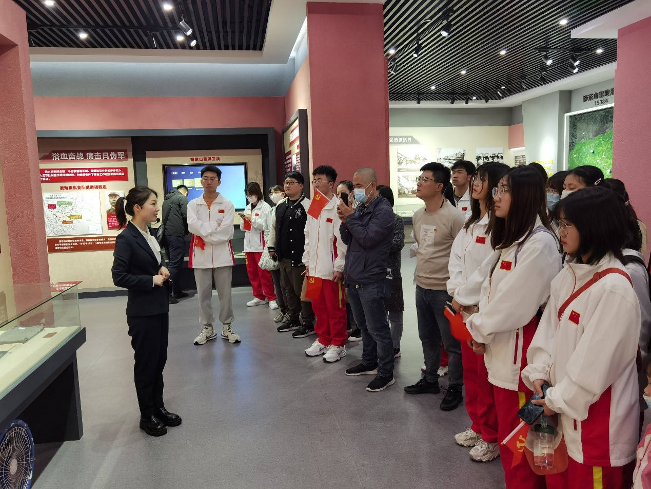 在杨家山里抗日战争展厅中,讲解员分别从“日军铁蹄 践踏国土”“中流砥柱 使命担当”“百折不挠 浴血奋战”“红色堡垒 铜墙铁壁”“红色基因 代代传承”五个部分,向大家讲解了杨家山里人民在中国共产党的领导下,为争取民族解放而进行的艰苦卓绝的斗争历史,充分反映了中国共产党抵御强敌、艰辛探索、奋发图强的辉煌历程。大家跟随讲解员认真聆听讲解,仔细观看展厅内丰富的图文资料和陈列实物。一幕幕光影岁月,一声声娓娓道来,共同回顾党的奋斗历程,缅怀革命先烈。随后,同行的党员同志面对党旗集体宣誓,重温入党誓词,进一步坚定理想信念。同学们深受鼓舞,纷纷表示,要继承革命传统,弘扬优良作风,牢记党的宗旨,坚定理想信念,以实际行动传承红色基因,发扬红色精神。