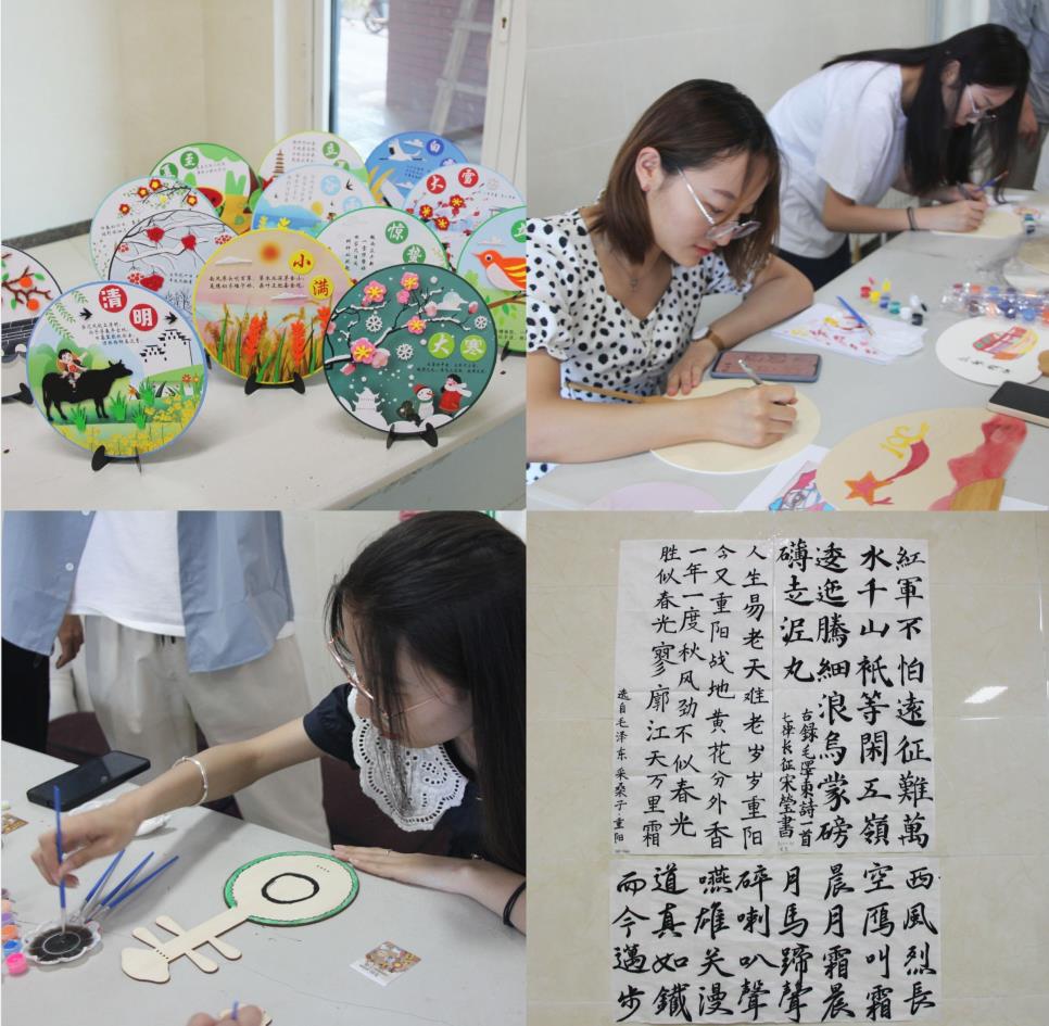 走进北区四公寓一楼分会场,首先映入眼帘的是书法作品展,“六进公寓”系列传统文化进公寓体验活动在分会场火热开展。参观书法作品展、现场体验毛笔字、手工制作二十四节气贴画、亲手绘制传统乐器,传统文化进公寓系列活动让同学们在体验中更直观地了解了中国的历史和传统文化的源远流长,亲身感悟了中华传统文化的精髓和魅力。