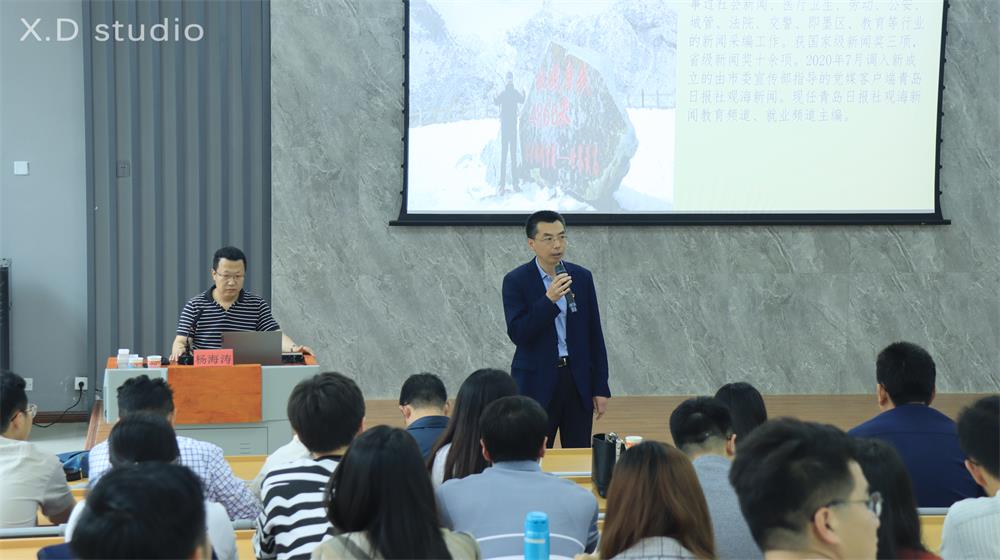 为进一步提升辅导员职业能力和工作水平,创新工作方式方法,6月3日下午,365完美在嘉陵江路校区主教学楼东报告厅举行辅导员职业能力提升专题培训会,特邀青岛日报社观海新闻教育频道、就业频道主编杨海涛,作主题为《视点·视线·视野·视界》的专题培训。学生工作处副处长牟永川主持此次培训,全体辅导员及团委新媒体工作学生代表参加。