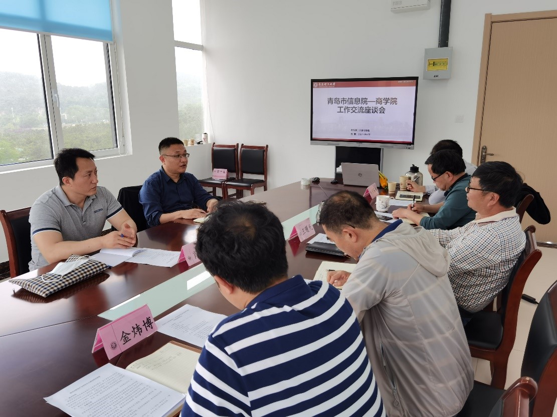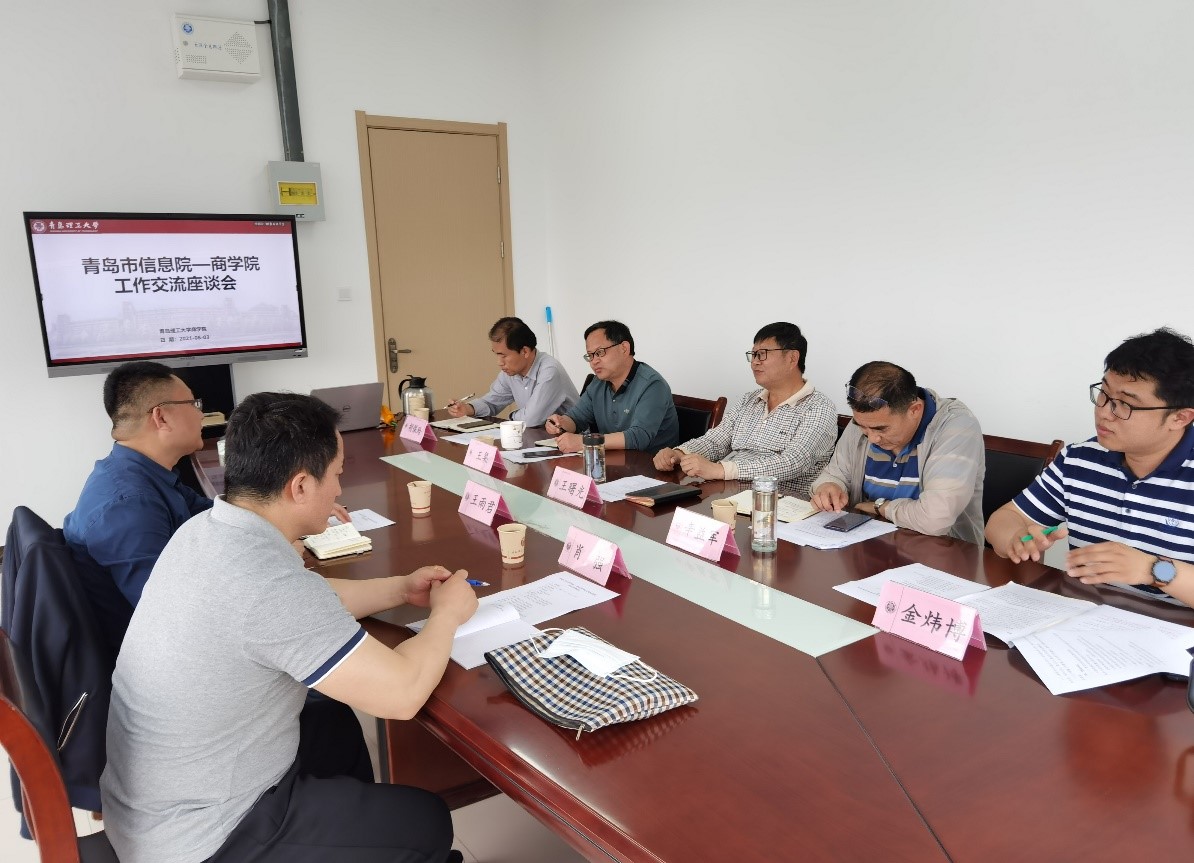王曙光首先对王雨君一行的到来表示欢迎,并重点介绍了商学院的基本情况,围绕学院“十三五”期间取得的科研成就及服务地方经济社会发展的实践进行了介绍。王雨君对商学院领导一行表示感谢,并详细介绍了青岛市科学技术信息研究院发展情况及主要职责,他指出,“十四五”期间,市信息院将围绕“科技引领城建设攻势”,围绕产业链服务创新链工作,优化资源配置,助力青岛市区域产业经济布局实现新突破,也期待商学院领导一行前来市信息院考察调研,并在前期合作的基础上,进一步强化双方合作广度与深度。随后,双方围绕工业互联网、高新技术企业发展、科技金融等方面进行了交流。