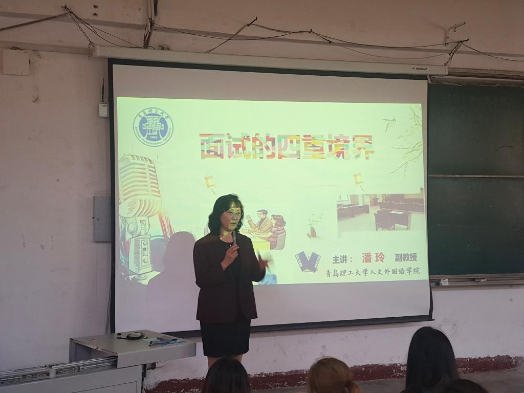 潘玲首先对面试相关知识做了介绍,她指出,面试是一种在特定场景下,经过精心设计,通过主考官与应试者双方面对面地观察、交谈等双向沟通的方式,更是了解应试者素质特征、能力状况及求职动机等的人员甄选方式。对大学毕业生来说,能否顺利就业,能否找到一个理想的工作岗位,掌握一些择业技巧非常重要,它可以帮助毕业生在择业过程中少走弯路,找到自己满意的职业和岗位。她重点从当前就业形势分析、面试的四重境界、简历制作技术等方面进行了讲解,用生动幽默语言和大量实际案例,为同学们带来了一场就业知识和技巧盛宴,并对同学们在求职过程中的困惑进行了一一解答。