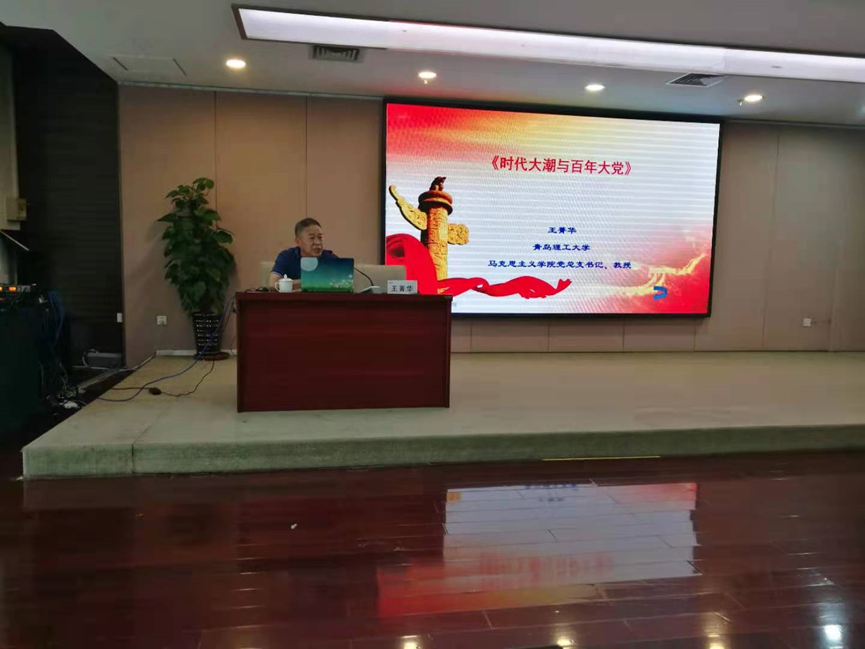 王菁华教授从“学史明理,学史增信,学史崇德,学史力行”的基本要求出发,为中冶东方工程技术有限公司开展了一场生动的党史教育课《时代大潮与百年大党》。王菁华教授对百年大党的发展历程进行了细致梳理,从开天辟地、改天换地、翻天覆地、惊天动地的四个发展阶段进行论述,深入解析并明确回答了中国共产党为什么“能”、马克思主义为什么“行”、中国特色社会主义为什么“好”等重要理论问题。