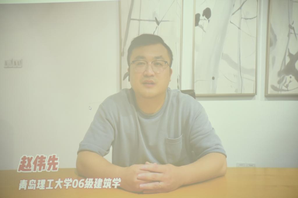 论坛伊始,袁飞表达了自己回到母校的喜悦与激动。他将自己十余年的工作经验转换成有关实习、创业、机会的故事,以通俗易懂的方式向大家介绍建筑师的工作日常。在实习板块,袁飞讲解时间最长,感触也最深。他表示,实习不仅可以在就业前让你有更多的判断和选择,更能极大地缩短从校园到社会转变的适应时间。对于机会,袁飞表示要学会前置自己的角色,这样一旦机会来临,可以迅速把握,从而能快速融入并适应它。袁飞的分享风趣幽默,现场不时爆出阵阵热烈的掌声。他不时与台下同学互动,现场气氛轻松活跃。最后,袁飞带来了同在上海齐越建筑设计有限公司的校友赵伟先、张鹏程的视频寄语,两位校友在视频中以自身经历勉励学弟、学妹们做一个有担当、有梦想追求、敢于面对困境、永不放弃的建筑学子。