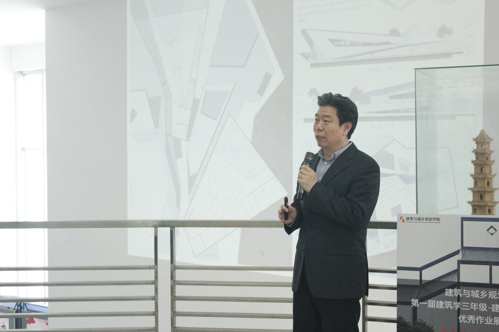 颁奖结束后,王兴田教授、郝赤彪教授致辞,他们对同学们的建筑设计作业进行了综合评讲,鼓励同学们尝试不同的建筑风格,加强基本功的训练,灵活运用所学知识;强调同学们要加强基本功的练习,同时不断反思自己的作品,进行纵向分析,真正在课程设计训练中有所收获。最后,王少飞老师借此次作业展评表达了对18级同学们的期许,他希望同学们通过这次展评,能够在不同导师组的交流中相互学习,取长补短,提升专业素养,以为今后的专业学习打下坚实的基础。