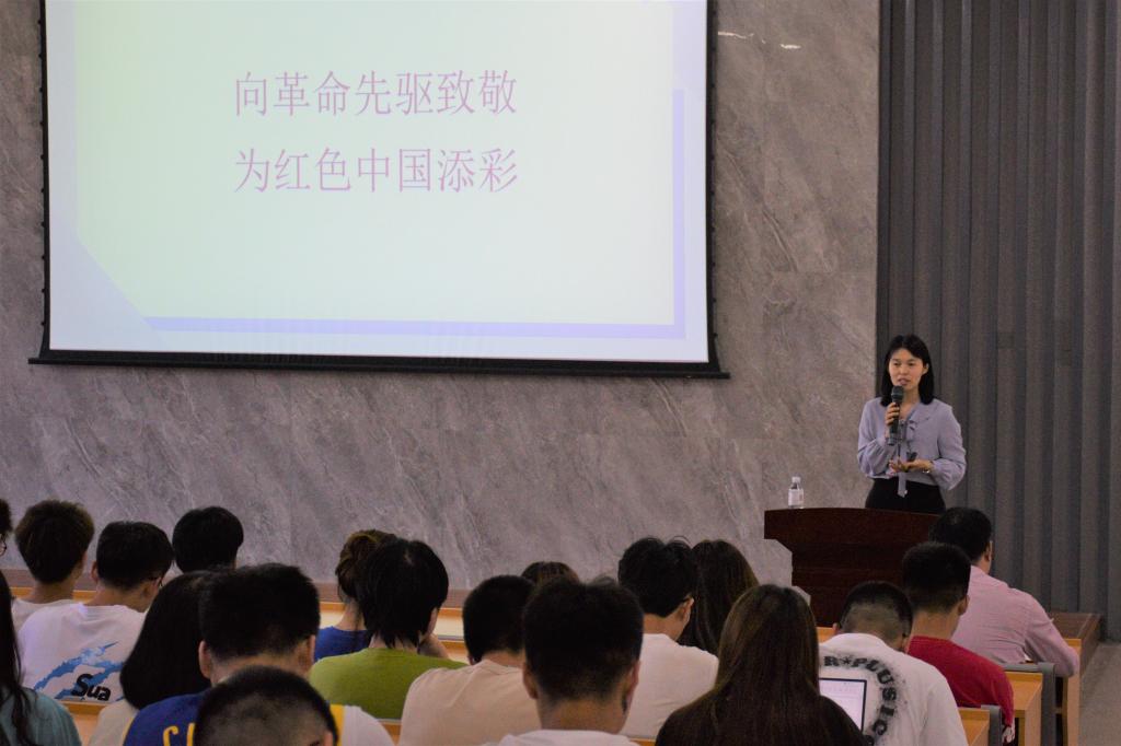 讲座中,蒋玲玲围绕着“红色江山”这一主线,从“山河破碎、播撒火种、先驱奋斗、星火燎原、走向新生”五部分入手,系统讲解了青岛地方革命党史和红色文化,带大家一起重温了中国共产党青岛党组织带领青岛人民开展红色革命运动、争取民族独立和人民解放的峥嵘岁月、进行社会主义建设的艰辛探索,以及开辟社会主义事业发展新时期的波澜壮阔,并通过鲜活事例介绍了老一辈革命家王尽美、邓恩铭、李慰农等青岛共产党人为民族复兴和人民幸福视死如归、无怨无悔和担当有为的革命品质。青岛党组织几代共产党员在艰苦卓绝的峥嵘时代里,前赴后继、不屈不挠的奋斗史深深鼓舞、鞭策着在场的每一位师生。讲座最后,蒋玲玲号召在场的青年学生向革命先驱致敬,为红色中国添彩,希望大家传承和弘扬革命精神,以百年党史鼓舞斗志,坚定信念,凝聚力量,启迪智慧,砥砺品格。