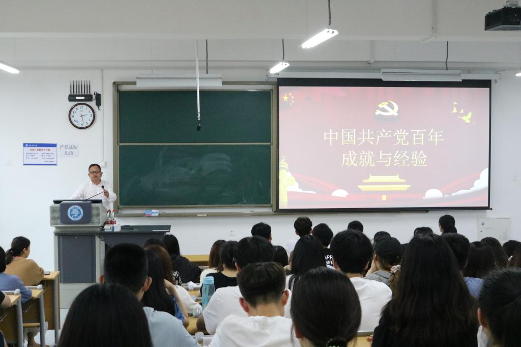 为进一步贯彻落实党史学习教育的部署安排,持续提升学院新发展党员政治理论素养,全面做好党员发展教育工作,6月17日,在C1-3楼403教室,商学院党委书记王粲以《中国共产党百年成就与经验》为题为94名新发展党员上专题党课,学院学生党支部书记刘心芝、冯宁、刘奕、杨洪敏同时参加了本次党课学习。