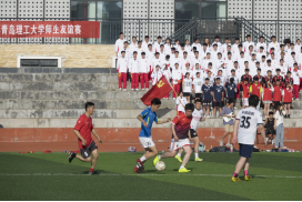 6月16日下午,在嘉陵路校区,由校足球队总教练张鹏领衔的教工队与由校学生足球队队长机械与汽车学院潘伟轩同学领衔的毕业生队展开较量,一次次的漂亮过人,一次次精彩的抢断,比赛激烈胶着,紧张而又和谐,对抗无碍长幼,交流不分师生,体现了友谊第一、比赛第二,比赛以3比3握手言和。