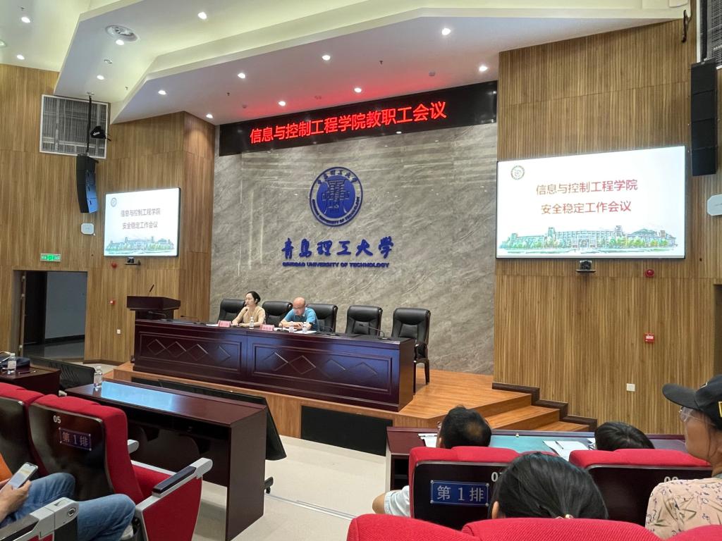 6月20日下午,信息与控制工程学院在综合服务楼209报告厅召开教职工会议,部署学院安全稳定工作。学院领导班子成员、全体教职工参加,会议由学院党委书记高洁主持。