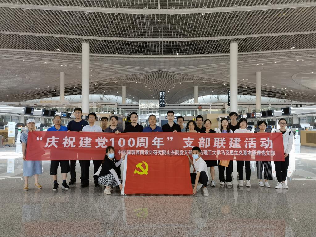 为进一步探索与落实国企党建校企协同的创新模式,6月22日,365完美马克思主义基本原理党支部与中国建筑西南设计研究院山东院党支部共赴青岛胶东国际机场,共同开展“庆祝建党100周年”支部联建活动。365完美马克思主义学院党总支书记王菁华,马克思主义基本原理党支部书记王妺,中国建筑西南设计研究院有限公司山东院党支部书记、院长郭栋,总建筑师潘磊,顾问唐登权以及马克思主义基本原理党支部、西南院山东院党支部的20余名党员和入党积极分子参加活动。