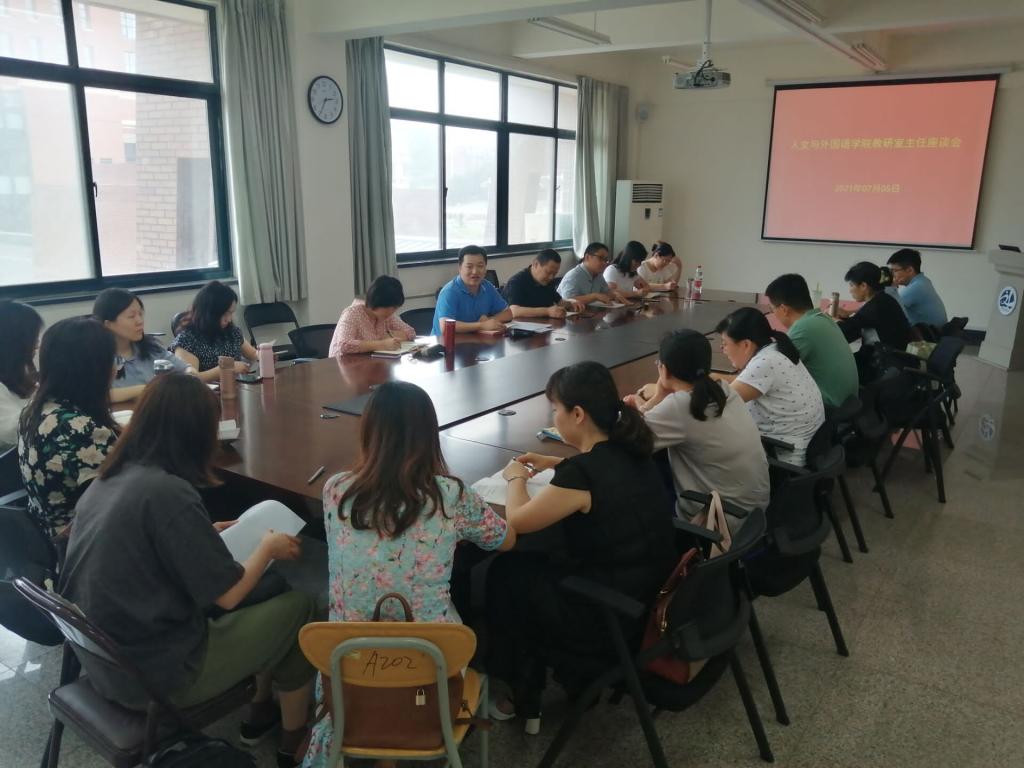 为深入开展党史学习教育“我为群众办实事”实践活动,及时了解师生诉求和关切,7月5日下午,人文与外国语学院党委在1教A410会议室召开教研室主任座谈会。学院党委书记卢新明、党委副书记兼副院长林海涛及学院各教研室主任、副主任参加了本次座谈会。