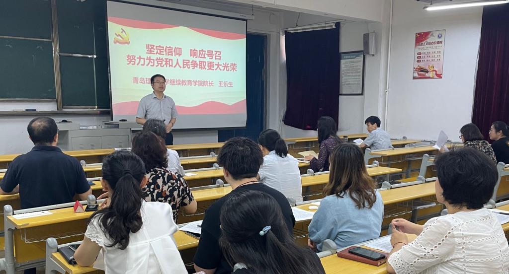 会上,党支部书记许倩领学了习近平总书记在庆祝中国共产党成立100周年大会上的重要讲话。院长王乐生与大家一起交流了心得体会,并以《坚定信仰、响应号召,努力为党和人民争取更大光荣》为题为大家上了一堂精彩的党课,鼓励大家在新征程上增强信仰信念信心,再接再厉、奋发有为。