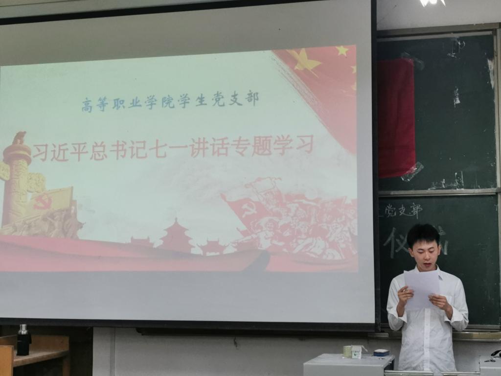 为深入学习领会习近平总书记“七一”重要讲话的重大意义、主要内容和丰富内涵,2021年7月7日上午,高等职业学院学生党支部于1教231室召开习近平总书记“七一”重要讲话专题学习会。学院党总支书记孟凡勇、学生党支部书记范晓光、全体辅导员以及学生党员参加。