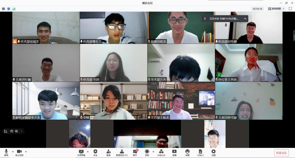 为深入总结学生会、研究生会等部门过去一年工作开展情况,谋划下一阶段工作思路和方向,7月28日,机械与汽车工程学生会开展述职评议线上会议,党委副书记董虎,学工办主任兼分团委书记王成,辅导员陈锦子,学生会、研究生会、易班等各部门负责人参加会议。