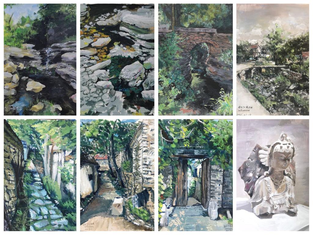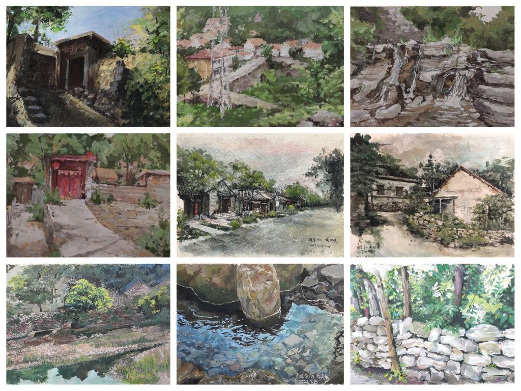 写生是引领学生贴近自然美、感受生活美的艺术实践课。此次杨集写生旨在提高学生的审美水平,对自然风景及环境的观察力和感受力,加深建筑学子对村落美学的认知。在杨集村庄实习期间,指导老师们带领学生在杨集三处各具特色的村庄进行实地采风,体验当地文化。有山路不便、杂草丛生的村庄,有井井有条的现代村庄,也有与山地相互交融、分布于群山之中的村庄。在三处村庄的采风过程中,学生们强烈感受到时代发展对于人们居住生活的影响。
