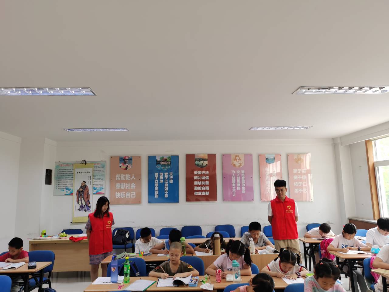 团队实践活动分别在济南市市中区大观园街道、济南市历城区全福街道电建一公司社区进行,队员在青少年活动中心协助社工进行中小学生的课业辅导,并进行课外活动的组织;在社区卫生服务中心协助工作人员引导居民接种疫苗,告知他们注意事项,维持接种现场秩序。同时积极参与社区居民委员会建设,协助工作人员进行房间布置与整理,为居民休闲活动提供场所。