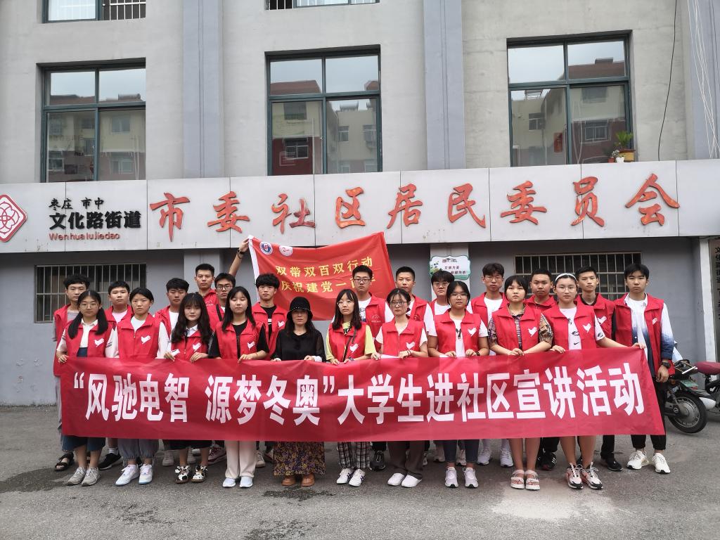 为扩大2022北京冬奥会“绿色、低碳”特点的影响力与知名度,向全体社会群众宣传绿色冬奥、低碳冬奥,2021年暑期,建筑与城乡规划学院建筑学(中外合作)201班李孝锋带领“青春在行动小组”以及部分高中生与华北电力大学“风驰电智 源梦冬奥”实践宣讲团,于山东省枣庄市市中区文化路街道市委社区开展“绿色冬奥,‘源’梦共行”主题宣讲活动。