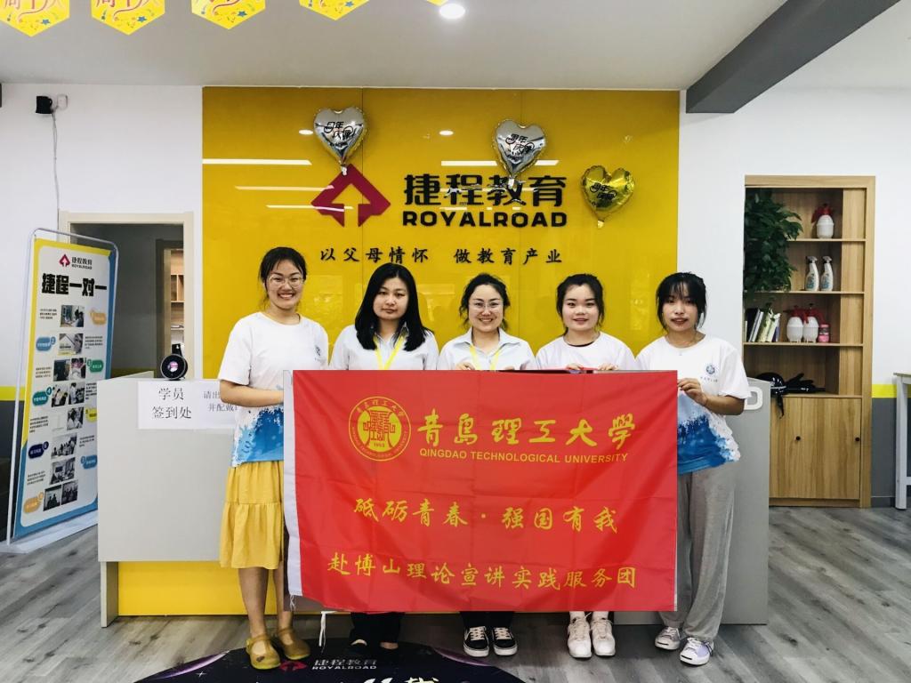 根据疫情防控要求,本次实践活动分为线上、线下两部分进行。自8月6日起,队员开始线上学习、录制《歌颂百年党史》朗诵视频,用激昂的声音来传达自己的爱国情怀;线下部分,则由博山当地队员前往捷程辅导班进行理论宣讲,深刻了解原山林场的发展创新的奋斗历程。