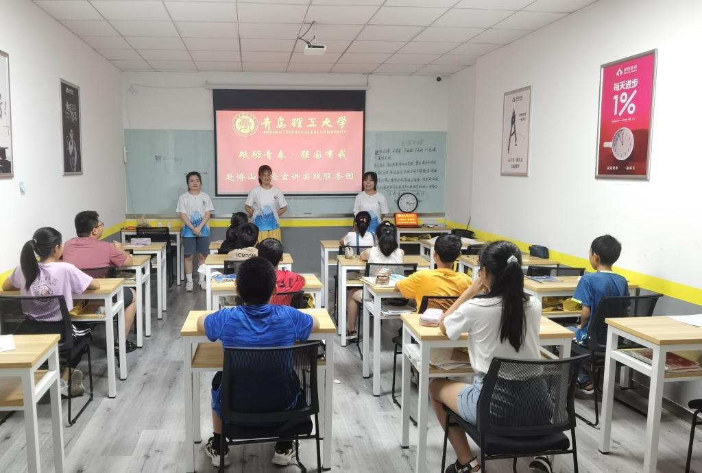 为进一步增强学生对自身所肩负的时代责任的深刻认识,推动党史学习教育走进青少年,理学院“砥砺青春·强国有我”红色理论宣讲实践团前往淄博博山区,与捷程辅导班同学们共同学习“原山精神”,贴近青少年需求,着力讲好党史故事、红色精神,引导他们听党话、跟党走。
