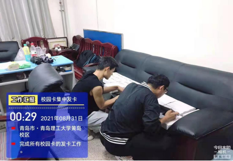 校园卡管理科经过前期调研,采纳师生建议,更新版面,新版面采用图书馆正面取景图片。29号上午10点收到厂家发来的5446张新生卡,立即连续加班两天两夜赶制读卡、分卡工作,于31日上午完成。31日上午对接学生处通知各学院领取新生卡。校园管理科在28日协调技术公司完成了图书馆服务大厅服务窗口的服务设备安装,在服务窗口开展了校园卡各类服务,为广大师生提供便利。
