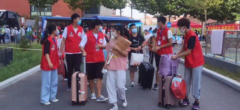 按照疫情防控要求,今年的报到流程依旧比较复杂。从迎新场地布置、后勤保障工作、安全保卫工作,再到迎新特色活动、宣传工作等方面,学院都做了周密部署,确保此次迎新工作的顺利进行。核验健康码,测量体温,搬运行李,消毒消杀,发放防疫物资……因家长无法陪同孩子入校,学院精心组织招募了一批学生志愿者,在已确定好的接站点和迎新路线中耐心服务。西操场和宿舍楼前,迎新标语和条幅营造出了浓厚的迎新氛围;绿色通道、校园网激活等都为新生们的报到带来便捷服务。迎新期间,学院领导深入迎新现场、宿舍,详细了解和询问新生报到情况。