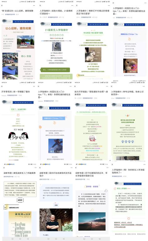 学院以微信公众平台“青理建院宣传邦”、“建筑学院学术部”、易班发展平台为线上主阵地,先后发布多篇迎新系列推送,涵盖了学校及学院介绍、专业介绍、班助介绍、入学指南等新生关心的方方面面,形式活泼、内容生动,为新生提供了丰富多彩的校园信息。此外,各位新生班助在前期对各班同学进行了细致的线上答疑,将准确信息落实到每位新生,帮助他们更加了解校园环境,尽快融入集体生活,以更加全身心的姿态开启大学新篇章。