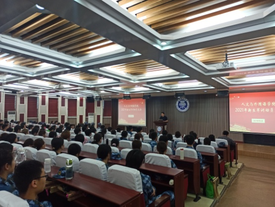迷彩青春绚烂多彩,青理军训如期而至。为激发学生爱国热情,培养学生艰苦奋斗的坚强毅力和集体主义精神,提高学生对军训的认识,9月6日上午,人文与外国语学院于主教学楼一楼东报告厅开展2021级新生军训动员大会,学院党委书记卢新明、党委副书记林海涛、21级新生辅导员扎西央宗、参训教官以及2021级全体学生参加此次大会。