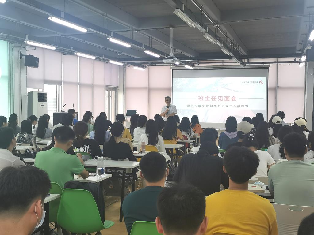 9月6日下午,建筑与城乡规划学院于滨海人居环境学术创新中心七楼召开2021级研究生班主任见面会。学院党委书记肖学斌、教授韩青、舒珊、王贺以及全体2021级研究生参加。大会由研究生辅导员刘超主持。