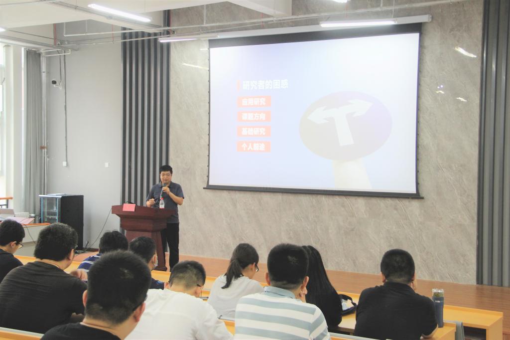 报告中,王育人教授剖析了卡门涡街的发现过程和虎门大桥涡振风波,他表示科技进步是一个极其复杂的、长期的过程,技术的革命性进步必须在伟大的科学发现基础上产生。王育人教授通过案例分析,揭示基础研究与技术进步之间的复杂关系,以此说明作为一个研究者,应该如何选择自己的研究课题和未来的科研道路。此外,王育人教授还介绍了其课题组在声学超材料研究方面的相关进展以及声学超材料的应用价值和新的研究方向。他表示,科学的进步,既要靠杰出的科学家,也要靠普通的科技工作者,强调作为一名科技工作者,应积极响应国家的号召,理论联系实际,不断探索创新。最后,王育人教授与在座师生及企业代表进行了互动与交流,对大家提出的问题进行了耐心解答。报告当天恰逢教师节,报告结束后,刘碧龙教授为王育人教授送上了一束鲜花作为教师节礼物。