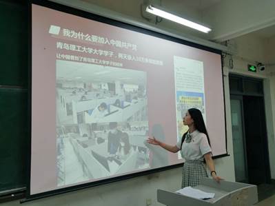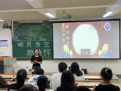 理学院新生入党启蒙微课堂首次课程在中秋茶话会现场启动,物理213班瞿蓥同学听完优秀学生党员的宣讲后坚定地说:“生逢其时,重任在肩。无数先烈浴血奋战,给了我们团圆、幸福的今天,我一定会积极向党组织靠拢,努力学习、拼搏奋进,以实际行动激扬青春力量!”