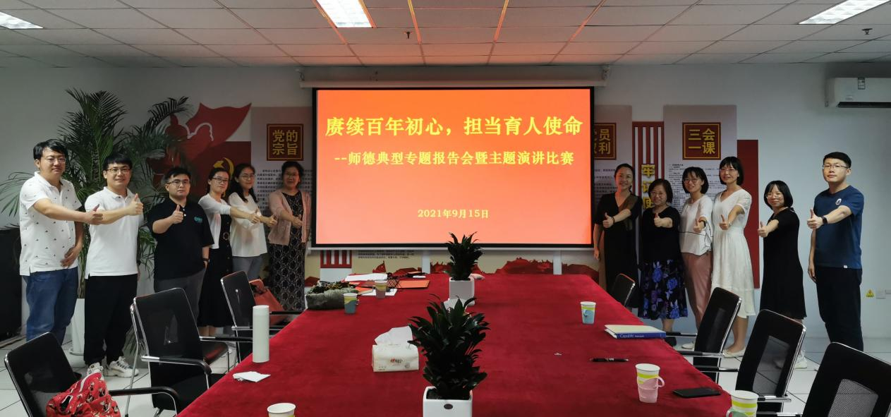 传承育人精神,树立师德典范。在接下来师德演讲比赛中,来自学院各教研室的9名教师结合各自教育教学的亲身经历和感受,畅谈了对教育事业的忠诚和责任,讲述了对学生的热爱、关心和帮助。他们以饱满的热情,从不同的角度阐述了对师德师风的理解。