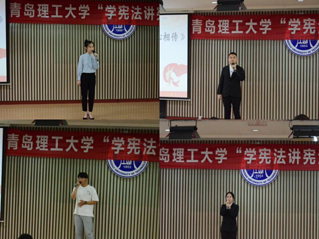 知识竞赛由单选题、多选题、判断题、案例题等多种题型组成,主要围绕《宪法》《民法典》《未成年人保护法》《预防未成年人犯罪法》《环境保护法》《国家安全法》等法律法规,结合社会主义核心价值观、诚信意识、社会文明、安全自护知识等内容开展,全方面考查学生法律素养,旨在不断提升学生的法治意识,让宪法精神在学生心中生根发芽。各个学院在前期组织选拔的基础上,推选出而出的8名选手来到决赛赛场,充分运用自己的法律知识,沉着冷静地答题,充分展现出理工学子昂扬向上的精神风貌、丰富的宪法知识积累和较高的法律素养。
