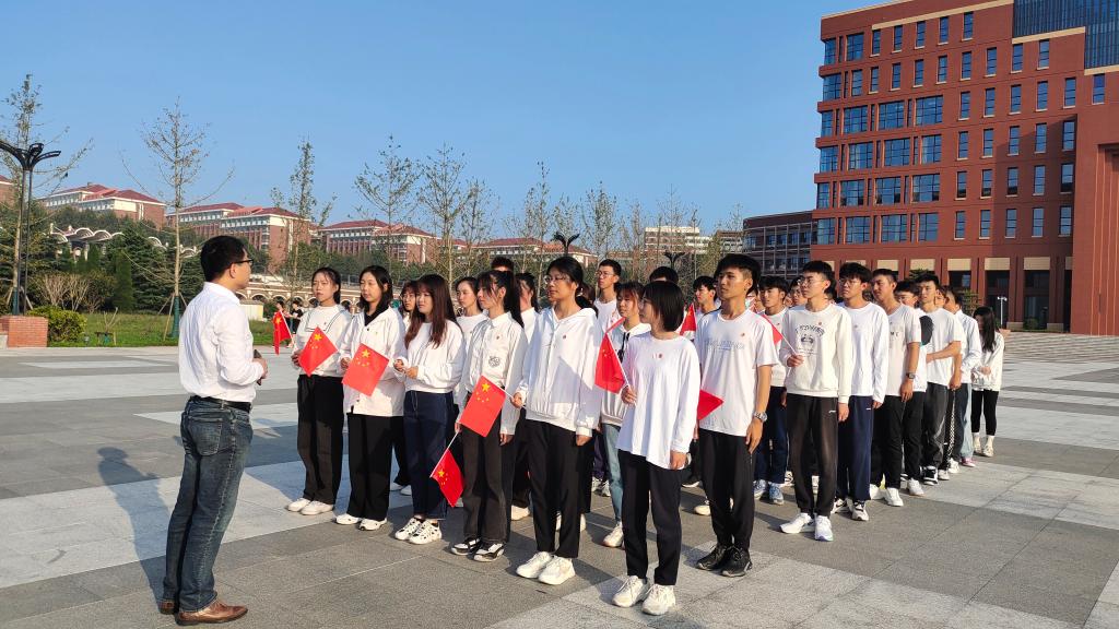 百年峥嵘岁月,恰是风华正茂。为庆祝中华人民共和国成立72周年,深刻缅怀每一个为国捐躯的烈士,厚植青年学生爱党爱国的情怀,9月30日烈士纪念日当天,机械与汽车工程学院组织“青马学员”60余人齐聚礼贤广场,参加学校举行的庆祝中华人民共和国成立72周年升国旗仪式。之后随即开展现场教学,学院团委书记王成带领“青马学员”同上一堂简短而又新颖的国旗下的思政课,礼献国庆。