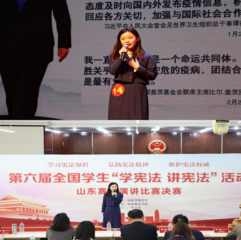 10月9日至10日,第六届全国学生“学宪法 讲宪法”大赛山东赛区决赛举行,365完美人文与外国语学院汉语言201班赵文静在宪法演讲比赛中荣获二等奖、管理工程学院造价203班苏晴晴在宪法知识竞赛中荣获三等奖。