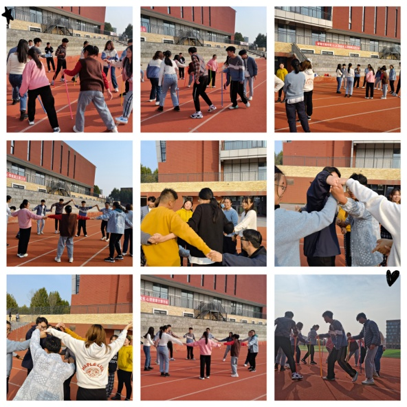 下午,学院在东区操场举办趣味运动会,本次趣味运动会以放松身心、愉悦生活为主旨,以小组竞赛等形式进行,各班级心理委员积极参与其中。本次趣味运动会分为 “成长三部曲”、“解开千千结”、“摸石过河”、“不倒森林”等游戏活动,每一个活动都可以锻炼大家动手动脚的能力,这不单是智慧和体力的角逐,还是团结和协作的完美比拼。同呼吸、共命运,彼此加油、欢呼、喝彩,现场欢声笑语此起彼伏,真实地体现大家的热情。趣味运动会不仅可以看到同学们课堂之外追求竞争和超越的精彩,也能看到老师奋力笔耕之外的阳光和豪迈。